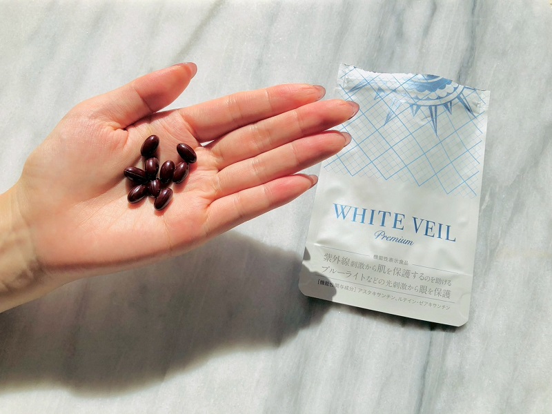 【機能性表示食品】ホワイトヴェールプレミアム(30粒/約1ヶ月分/5,880円(税込) *1 紫外線やブルーライトから肌や眼を守る機能性表示食品として、初の届出受理(2020年12月18日消費者庁に掲載) 日本初*1:紫外線+ブルーライトのW対策