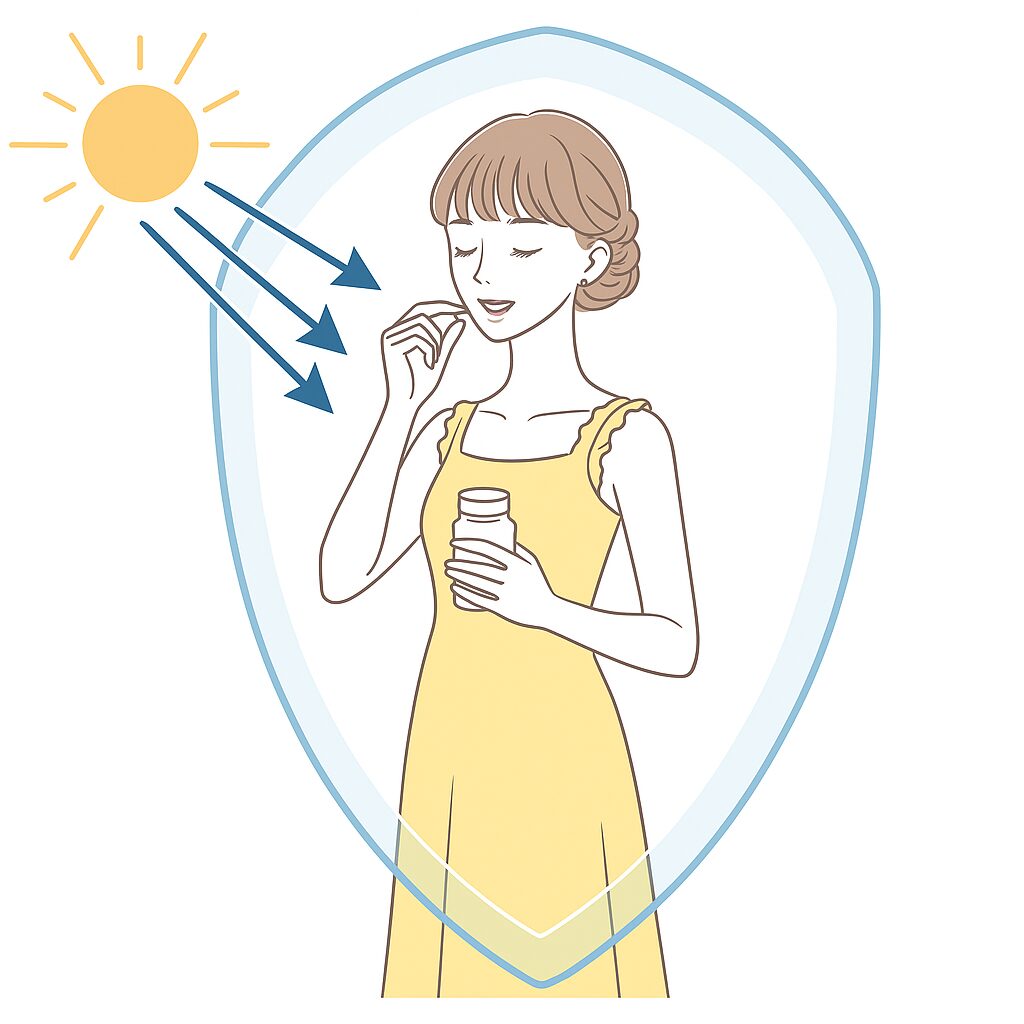「うっかり日焼けしないために」徹底的に紫外線を防ぎたいと考える方は塗るだけじゃなく、飲むUVケアで全身を内側から守っているんです。