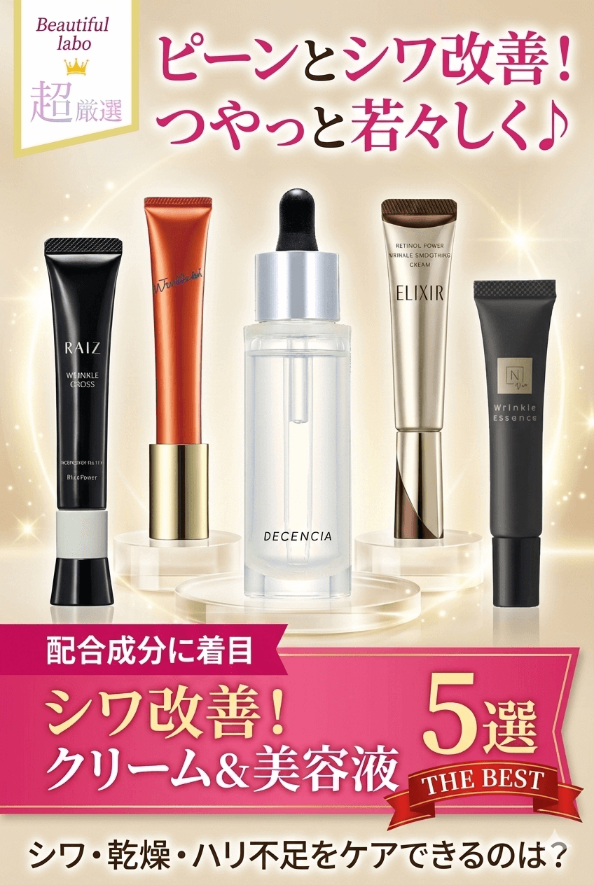そこで本記事では『成分とテクスチャーに着目』Beautiful labo編集部が厳選したシワを改善して若々しい表情へ整えてくれる超一押しアイテムを発表します!